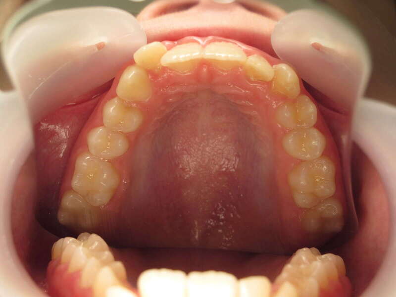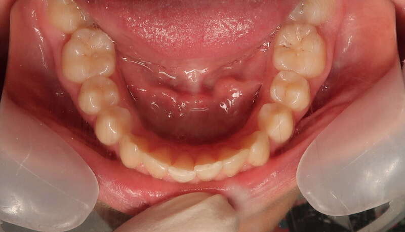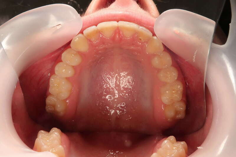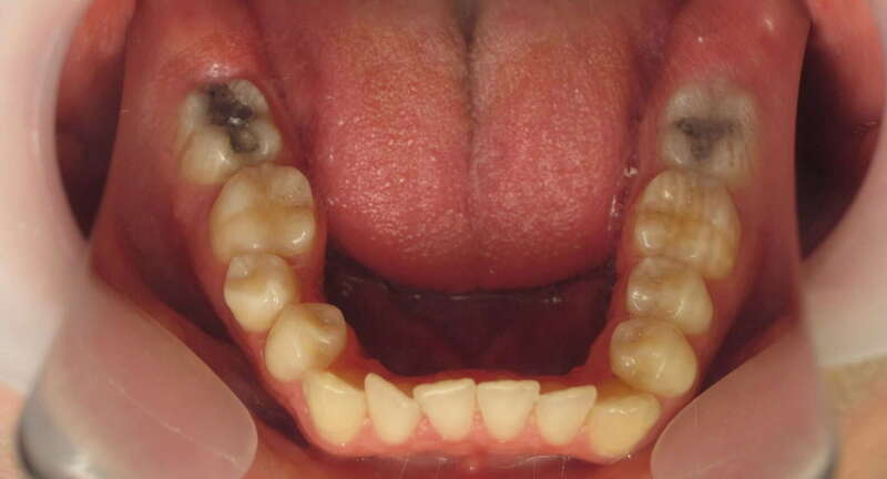 Encombrement bimaxillaire : Un manque de place important aux deux arcades (supérieure et inférieure), entraînant des chevauchements dentaires et des rotations gênant à la fois l'esthétique et l'hygiène.
