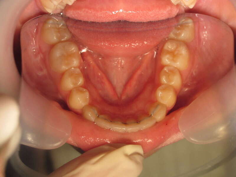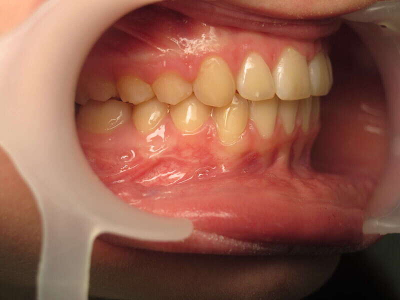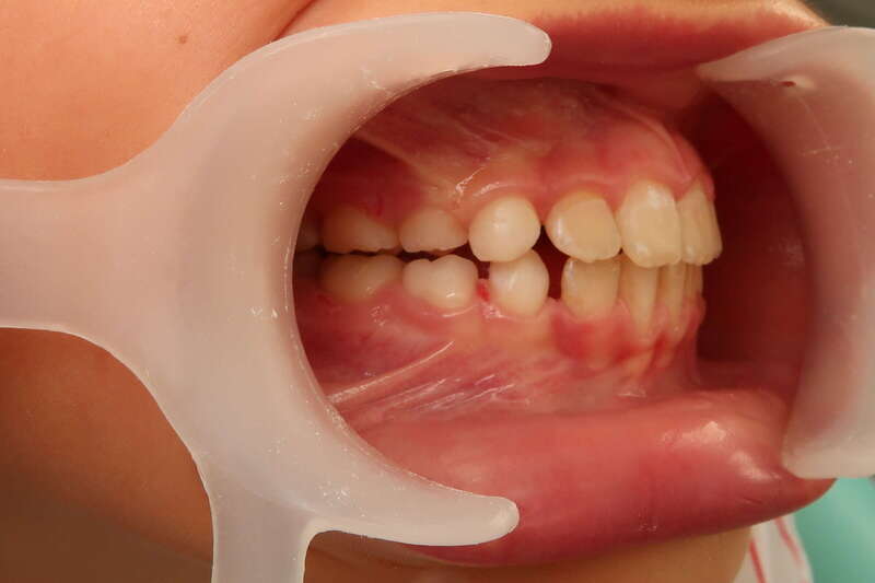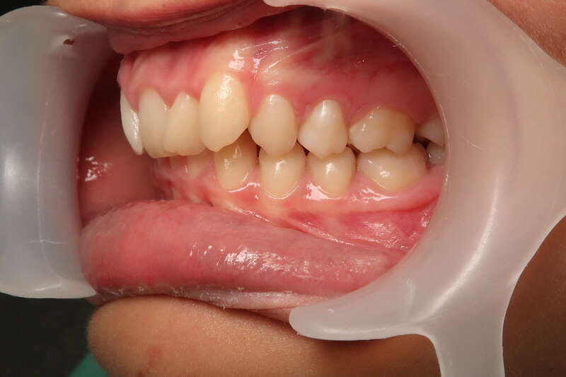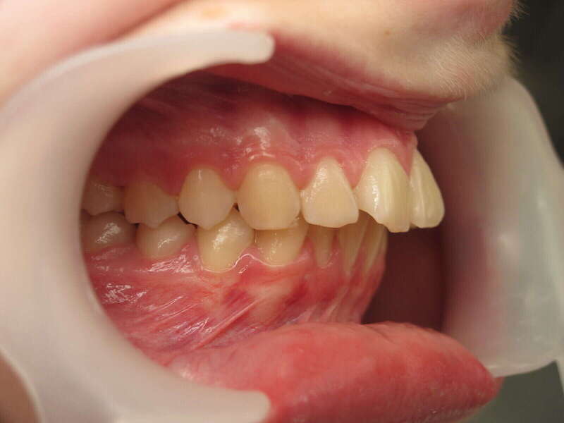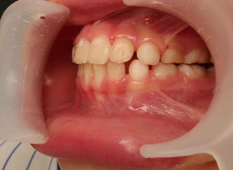 Restauration de la fonction labiale : En reculant les dents, on a permis à la lèvre inférieure de passer devant les incisives. La lèvre peut enfin jouer son rôle de contention naturelle.