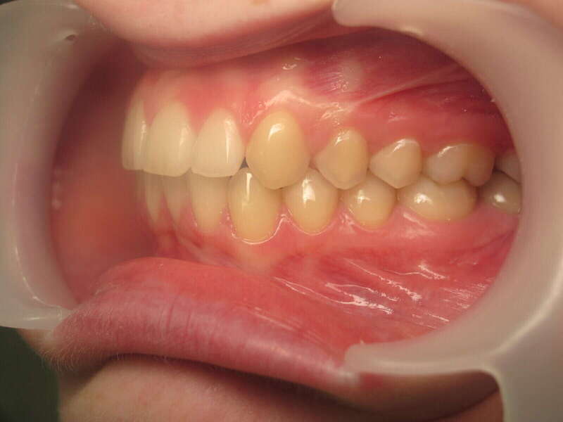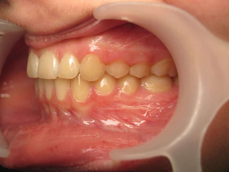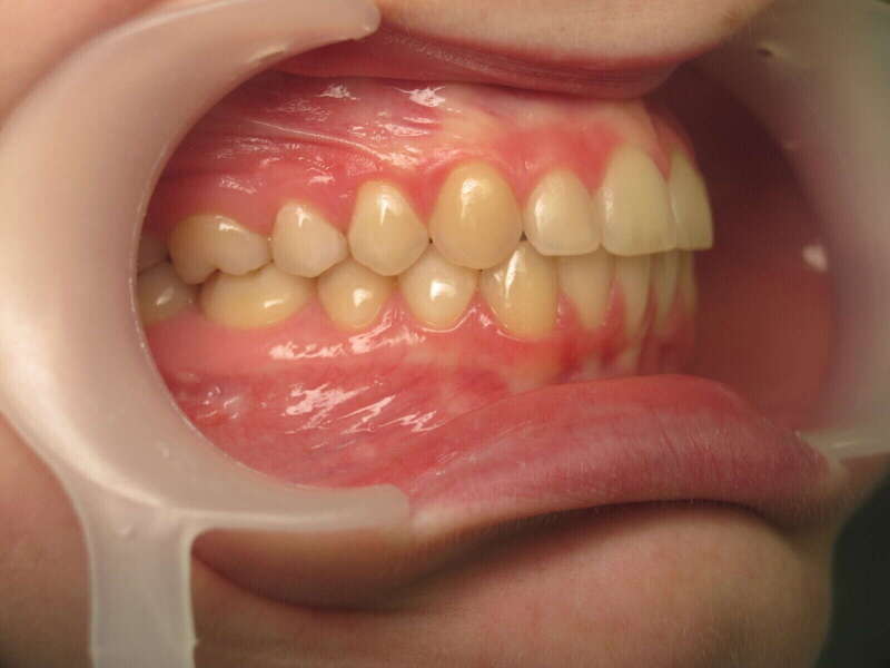 Photos "Après" : « Résultat après traitement multibagues et extractions de deux prémolaires. Le profil est harmonisé, les dents sont protégées et la fonction labiale est rétablie. Notez la parfaite finition de l'engrènement. »