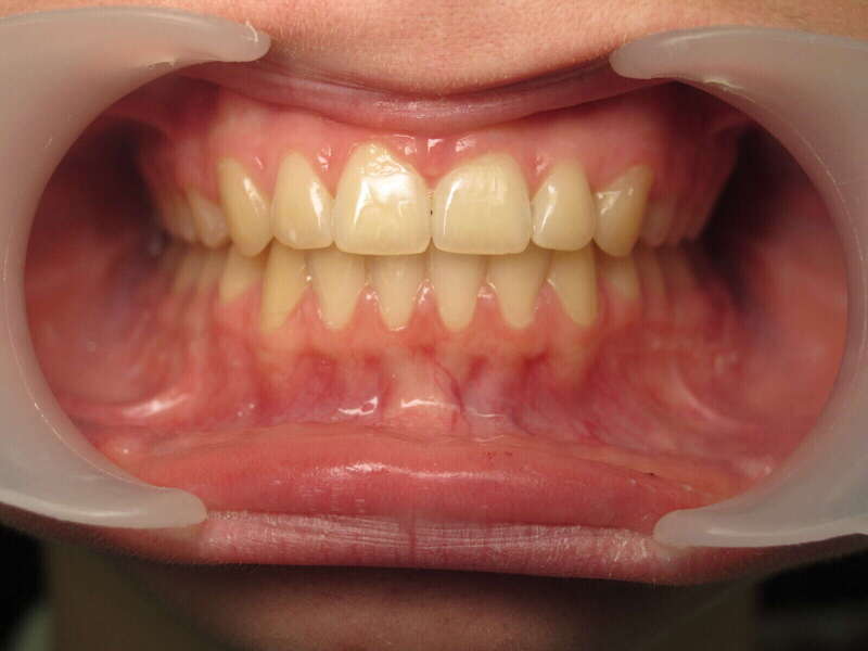 Photos "Avant" : « Encombrement sévère aux deux mâchoires avec un décalage marqué : les dents inférieures sont trop avancées, ce qui perturbe la fonction masticatoire et l'esthétique globale. »