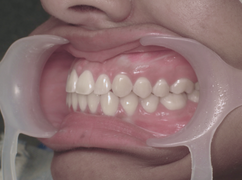 Obtention d'une Classe I Canine et Molaire : Le résultat final montre un engrènement "en clé", où les dents s'emboîtent parfaitement, assurant la stabilité du traitement.